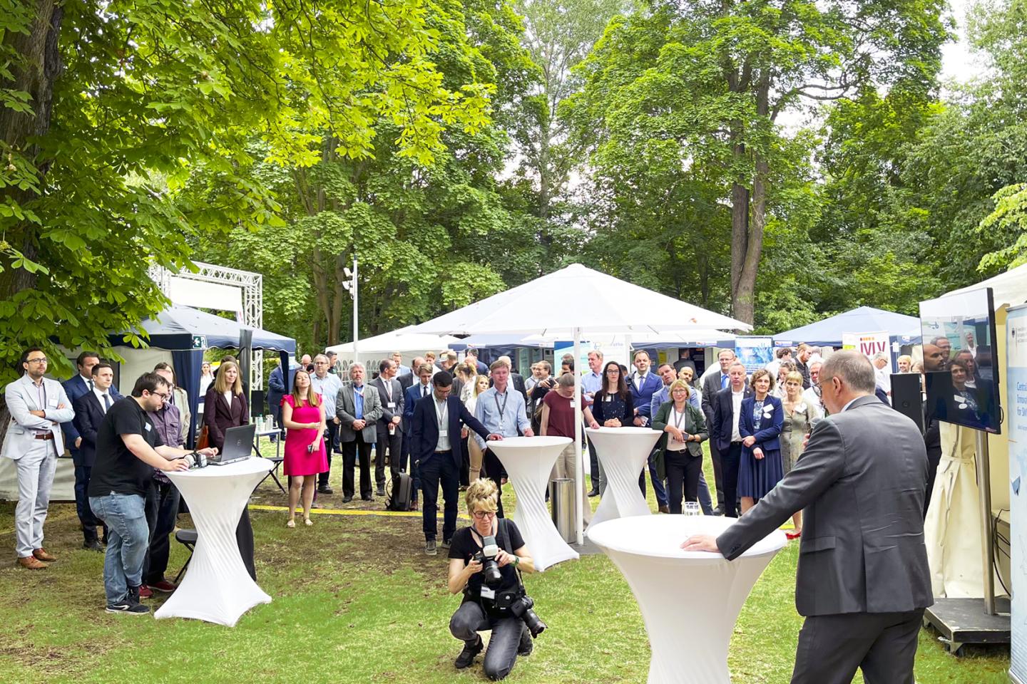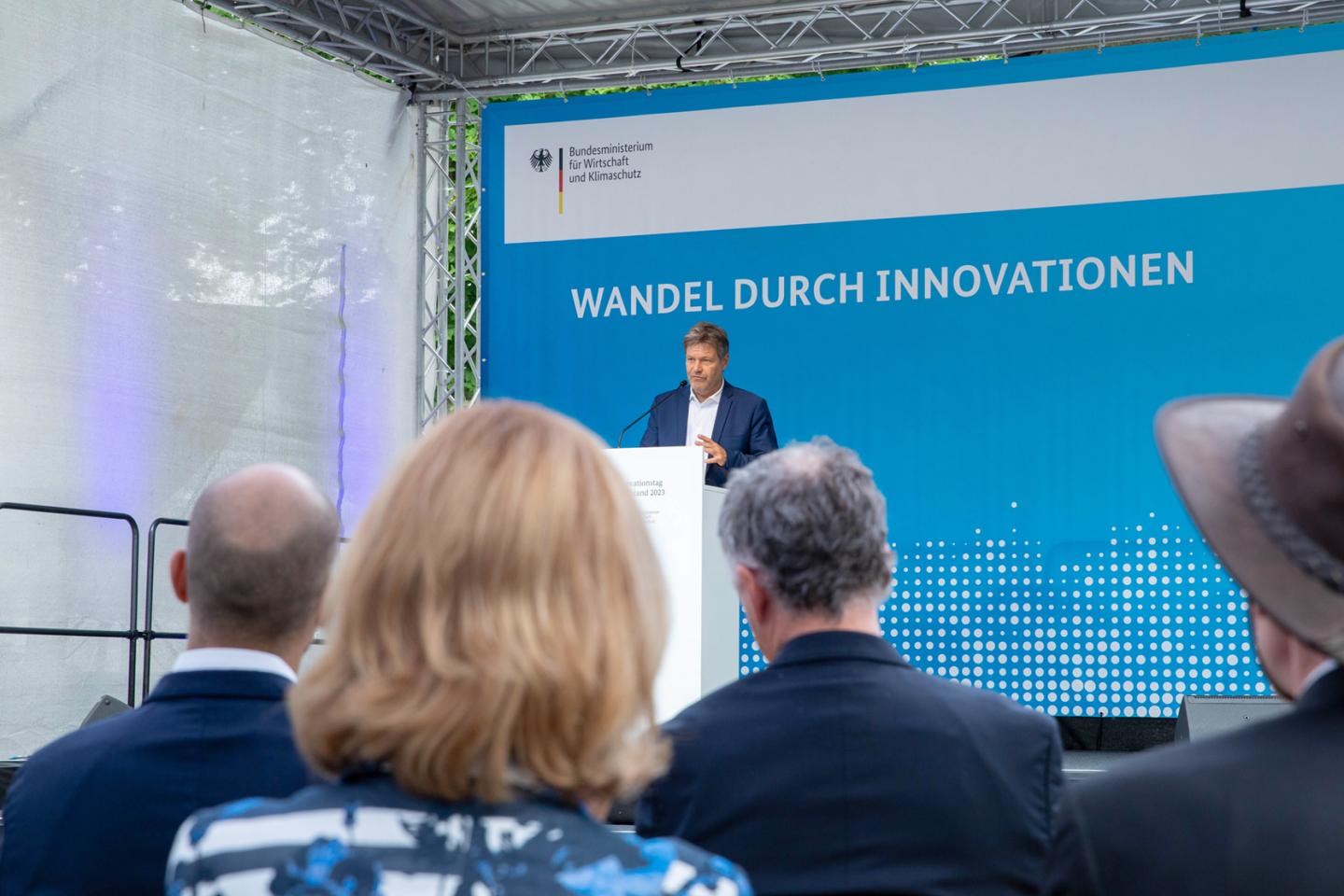 Am Innovationstag Mittelstand des BMWK trat Bundeswirtschafts- und Klimaschutzminister Dr. Robert Habeck mit mittelständischen Unternehmen und Forschungseinrichtungen in den Dialog. Die Veranstaltung zeigte sich erneut als ideales Forum mittelständischer Innovationstätigkeit und Kommunikationsplattform für kleine und mittlere Unternehmen.