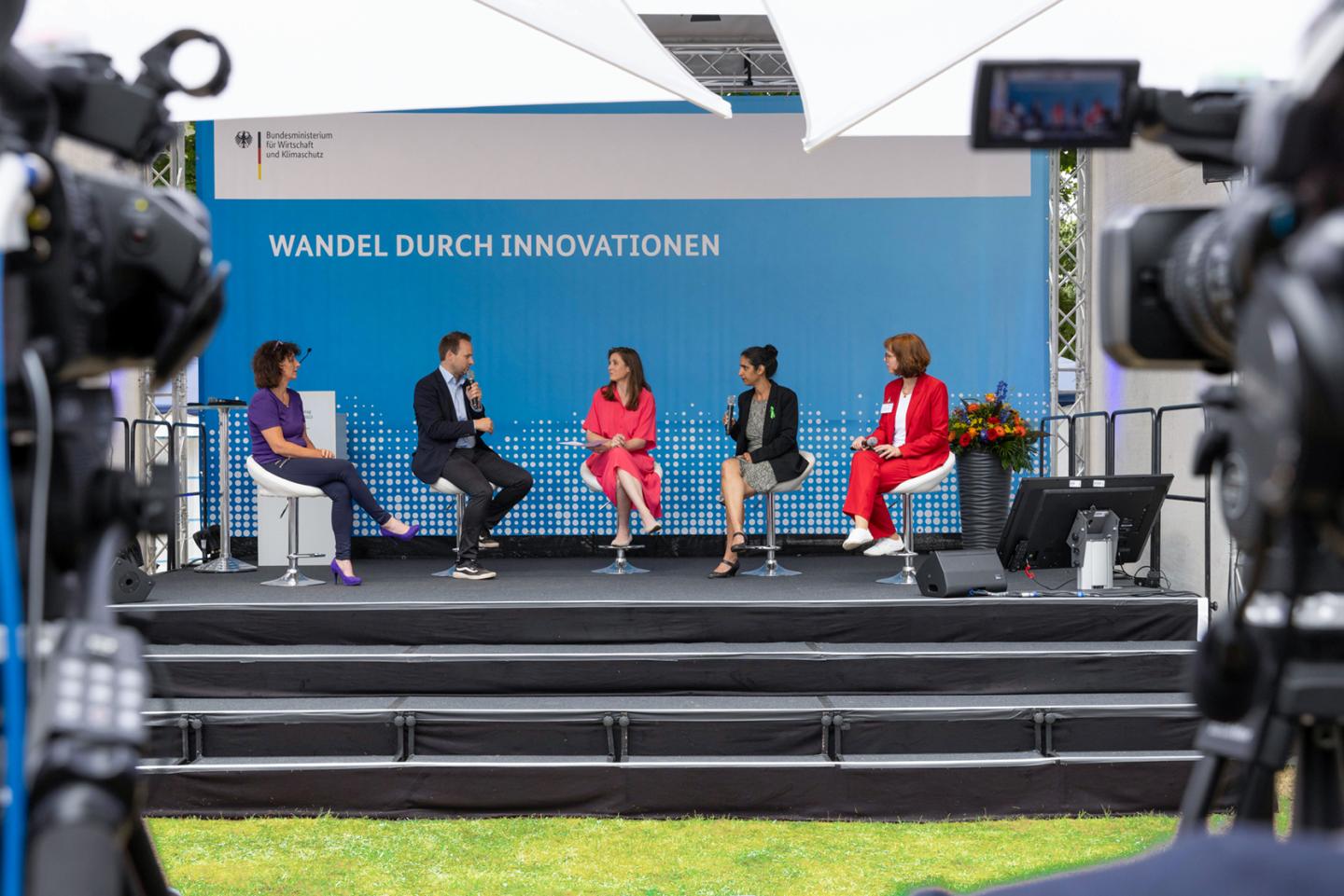 Im Veranstaltungsprogramm, das im Live-Stream übertragen wurde, standen neben innovationspolitischen Impulsen vor allem die Innovativen und der Mittelstand selbst im Fokus: Im Bühnen-Talk sprachen Projektverantwortliche mit Dr. Daniela Brönstrup, Leiterin der Abteilung Digital- und Innovationspolitik, über die Vernetzung unterschiedlichster Akteure im Innovationsgeschehen und die zielgerichtete Nutzung der Förderangebote des BMWK. Sie betonten auch, dass es gelte, mehr Frauen in den Innovationsprozess einzubeziehen. In insgesamt zwölf Speed-Pitches in den Panels „Ressourcen schonen – Effizienz steigern“, „Digitale Transformation gestalten“ und „Innovationen für die Gesundheit“ präsentierten innovative Köpfe ihre Forschungs- und Entwicklungsergebnisse in einem – im wahrsten Sinne des Wortes – kurzweiligen Format.