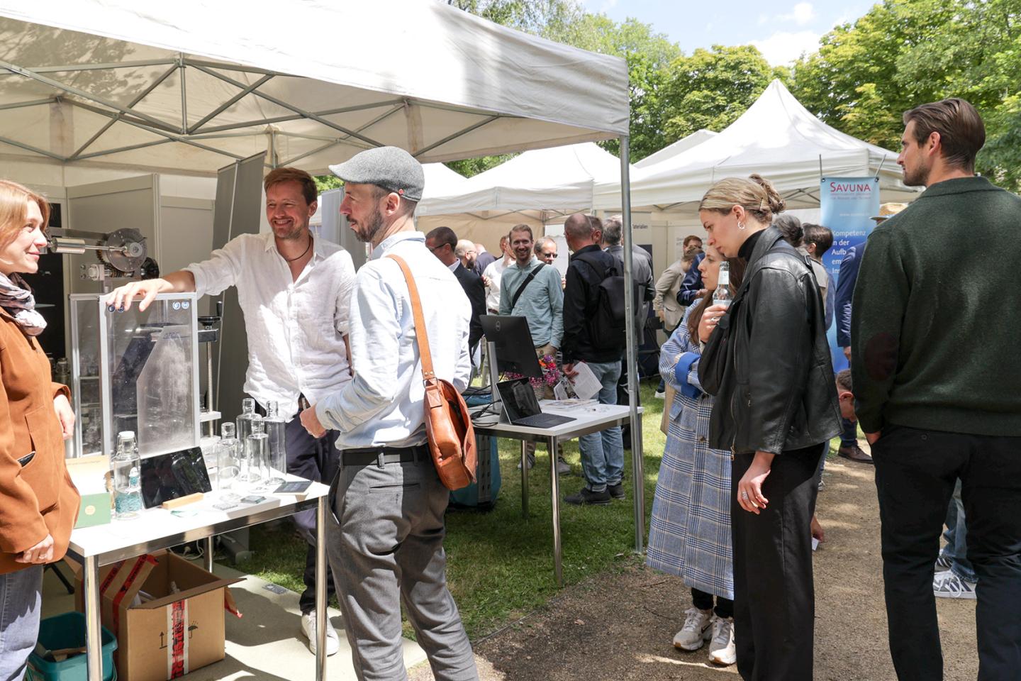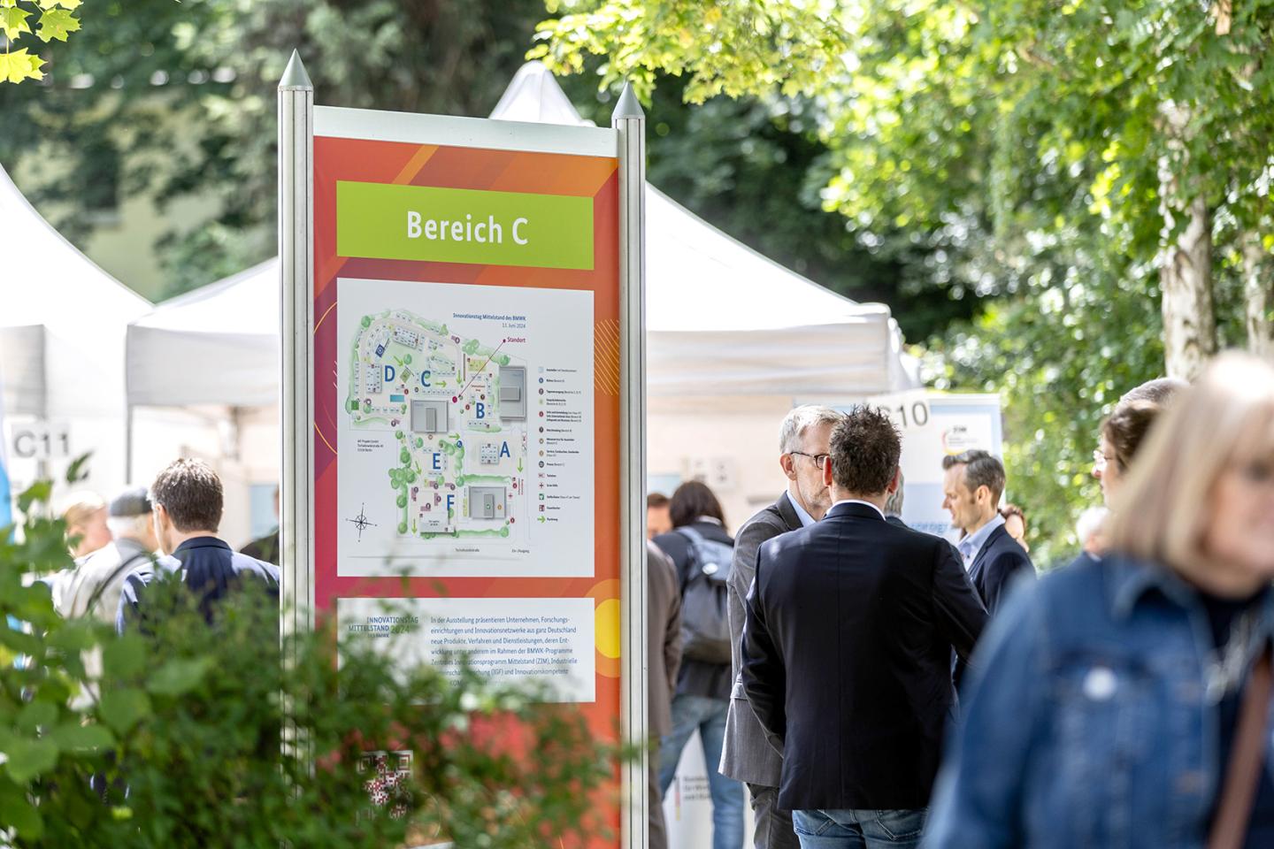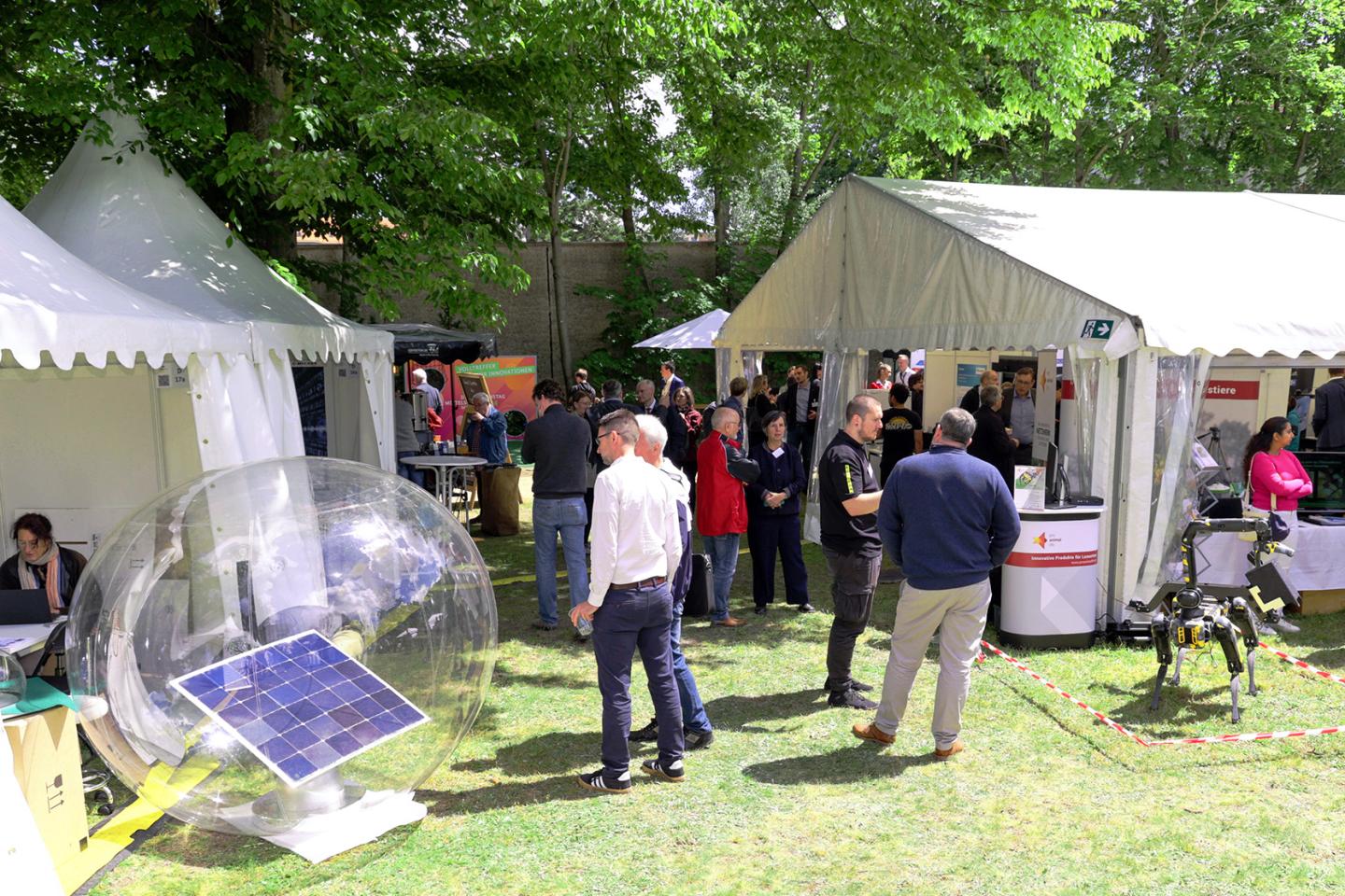 Die Stimmung auf dem Innovationstag war geprägt vom besonderen Flair unter freiem Himmel, vom Austausch zwischen Politik, Wirtschaft und Forschung und vom bemerkenswerten Erfindergeist der Aussteller. Als bedeutendes Forum für den innovativen Mittelstand und seine Partner – vom jungen Start-up bis zum angesehenen Familienunternehmen, von Forschungseinrichtungen und Verbänden bis hin zu internationalen Partnern sowie Vertreterinnen und Vertretern aus der Lokal-, Regional- und Bundespolitik – ließ das Event zahlreiche Räume zum Dialog entstehen.