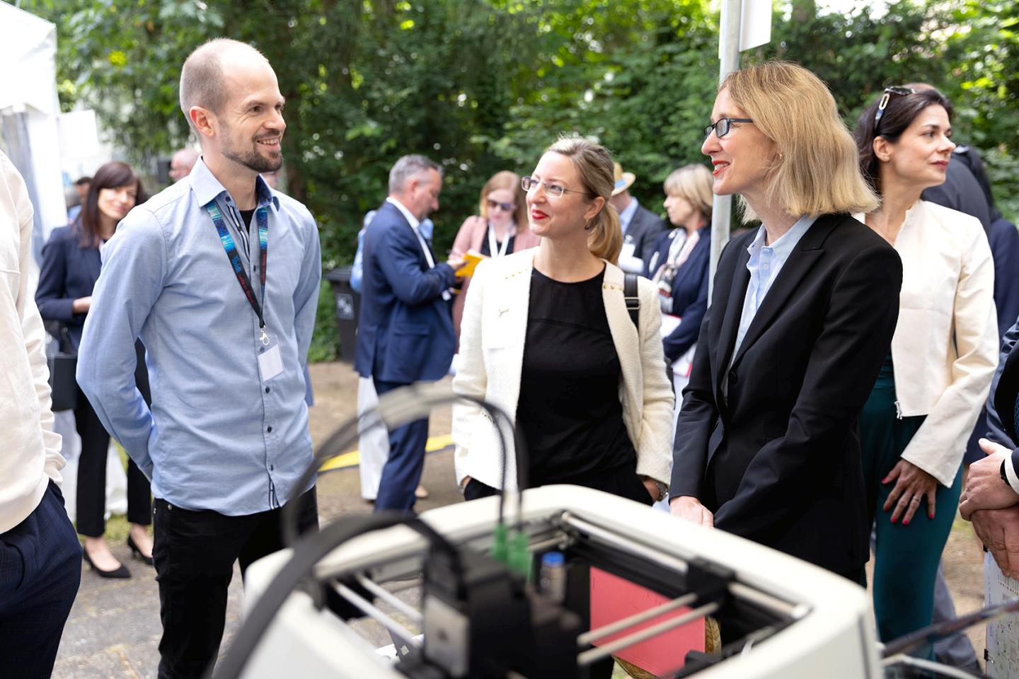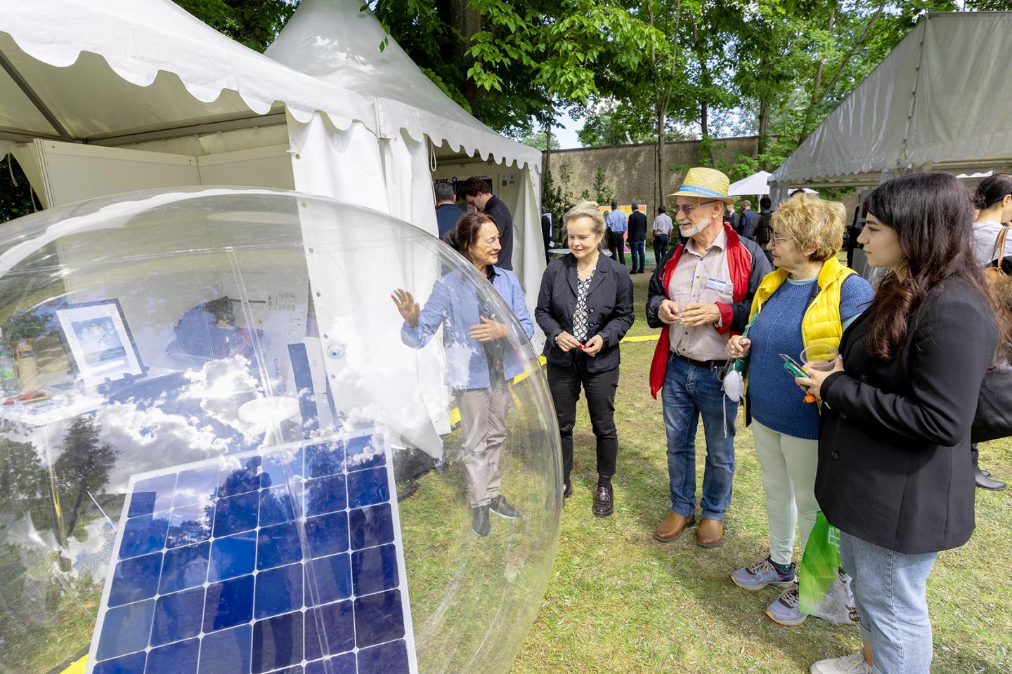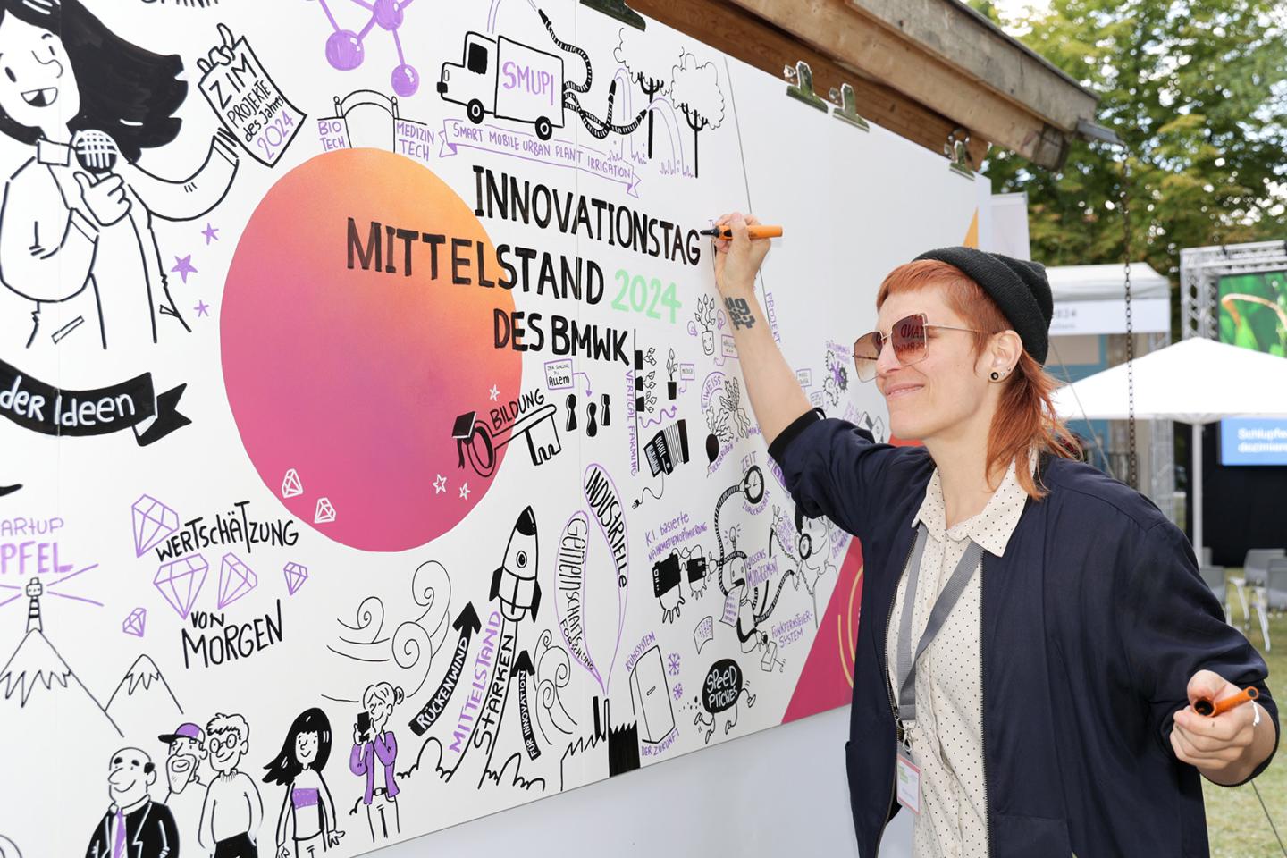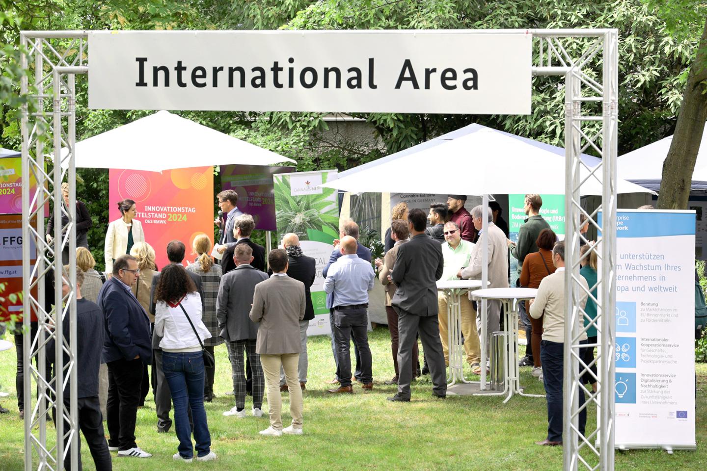 Die Stimmung auf dem Innovationstag war geprägt vom besonderen Flair unter freiem Himmel, vom Austausch zwischen Politik, Wirtschaft und Forschung und vom bemerkenswerten Erfindergeist der Aussteller. Als bedeutendes Forum für den innovativen Mittelstand und seine Partner – vom jungen Start-up bis zum angesehenen Familienunternehmen, von Forschungseinrichtungen und Verbänden bis hin zu internationalen Partnern sowie Vertreterinnen und Vertretern aus der Lokal-, Regional- und Bundespolitik – ließ das Event zahlreiche Räume zum Dialog entstehen.