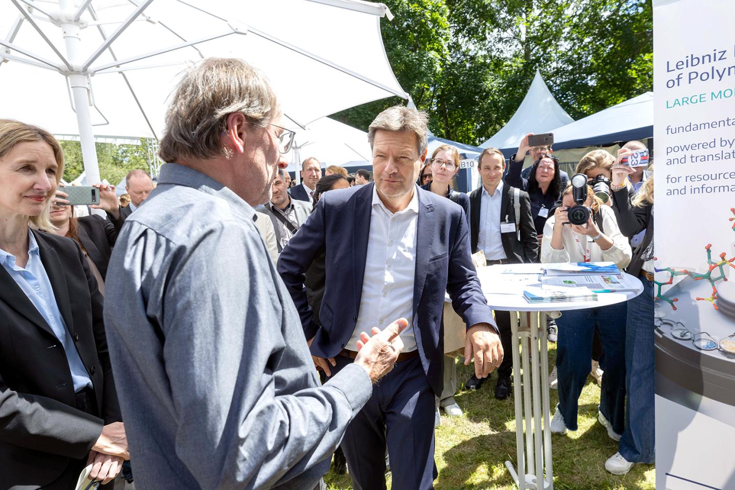 Dr. Robert Habeck kam auf dem Innovationstag mit Unternehmerinnen und Unternehmern ins Gespräch und war beeindruckt von deren Kreativität und Zukunftsfähigkeit: „Millionen von Menschen sorgen mit ihrem Mut, ihrer Leistungsbereitschaft und mit ihrer permanenten Erfindungsgabe dafür, dass Deutschland sich weiterentwickelt. Sie leben die Idee der sozialen Marktwirtschaft, die Wachstum, wirtschaftlichen Erfolg, und eine starke Zivilgesellschaft zusammenbringt.“